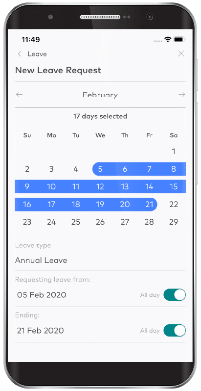 Employees can submit leave requests using their mobile or desktop app for their managers to approve.